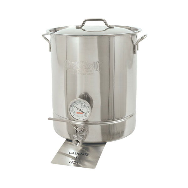 This is an 8 gallon (32 quart) brew kettle made of stainless steel. It comes with a 1/2 in. NPT detachable ball valve for draining, as well as a 3 in. diameter brew thermometer (with 2 in. stem) and a heat shield to protect the ball valve. The inside of the kettle is graduated for ease of measurement, and features low side indentions. It also comes with a stainless steel lid. Everything you need for doing all your brews in one glorious kettle! Bayou Classic is a trusted name in brewing and has the equipment you need to make fabulous beer, at a great price point!