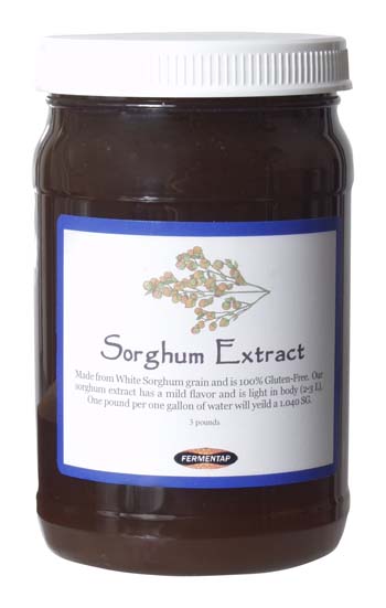 Mild in flavor, light in body (2-3L). One pound per one gallon of water will yield 1.040 SG. Sorghum has been used in brewing as an adjunct for years now, but is gaining popularity as a complete malt substitute in beer. Coeliacs - people allergic to gluten - have to avoid items with gluten in them, including beer. Substituting Sorghum extract for malt extract opens a whole new brewing door for people. In the shop, we have been experimenting with this extract, and have found the flavor of sorghum is not like malt at all. It has a light spicy note to it, and the mouthfeel is virtually non-existant. These two things make brewing with 100% Sorghum a nice little challenge. While the result is a drinkable beer, it needs some work. We suggest trying Heather Tips, Honey, Belgian Candi Syrup, and to stay away from "citrusy" hops. You use about 50% less hops when bittering sorghum extract. There are some ingredients that cannot be used in brewing a beer for a person who is allergic to Gluten. Any specialty grains, or any sort of malted grain in general. Liquid yeast is to be avoided, as the media in which the yeast are packaged does have trace amounts of gluten. Dextrin cannot be used either, although some people say any gluten is driven out during manufacturing due to the high heat involved. Obviously, some people are more sensitive to gluten than others, so please check with your doctor before taking our word for anything. After all, we are just beer guys!