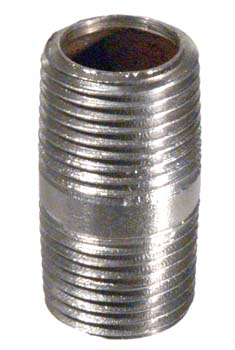 A stainless steel nipple used to combine two fittings with 1/2" FPT threads.  There is a 1/2'' space between threads.