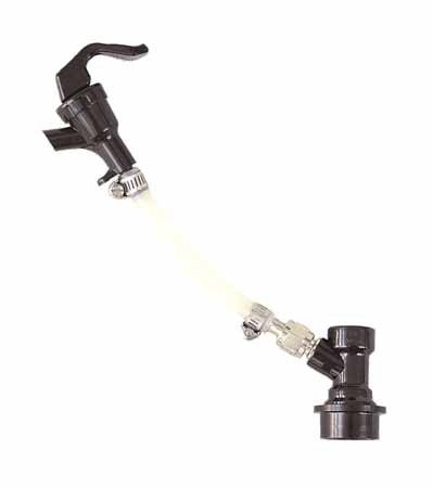 For dispensing wine from a keg. Includes quick disconnect with flare fitting, associated fittings, one foot of silicone tubing and a plastic hand held faucet.